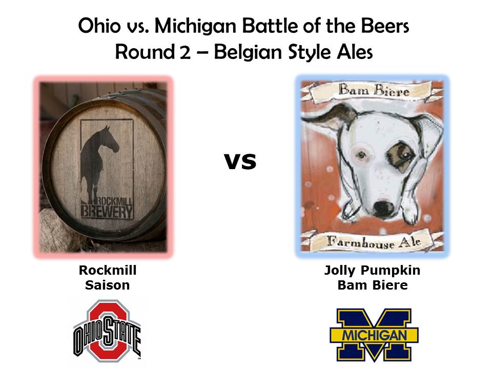 Bam Biere by Jolly Pumpkin (Dexter, MI) – Jolly Pumpkin makes beer in a way that differs from most of their competition in the Great Lakes region: open fermentation, aging beer in oak barrels, and bottle conditioning. Their lineup of beers is heavily (exclusively?) populated by variations on the sour beer styles of Belgium. Bam Biere is their flagship (and most affordable) beer. It’s a Saison/Farmhouse Ale that is bottle conditioned and dry hopped, and comes in at a sessionable 4.5% abv. I’ve been wanting to try this beer for a while, and this matchup seemed like a great excuse to do so.
