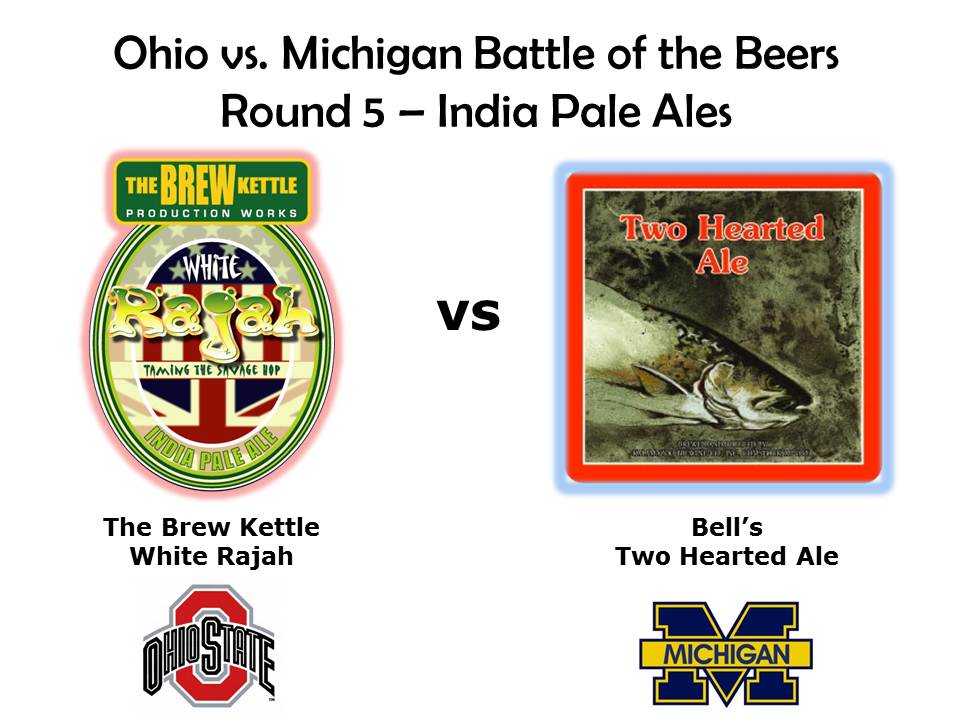 In round 4 the dark roasted malts were center stage. In round 5 we go to the opposite extreme with two beers where the juicy American hops dominate, completely overshadowing the malts: The Brew Kettle’s White Rajah vs. Bell’s Two Hearted Ale.