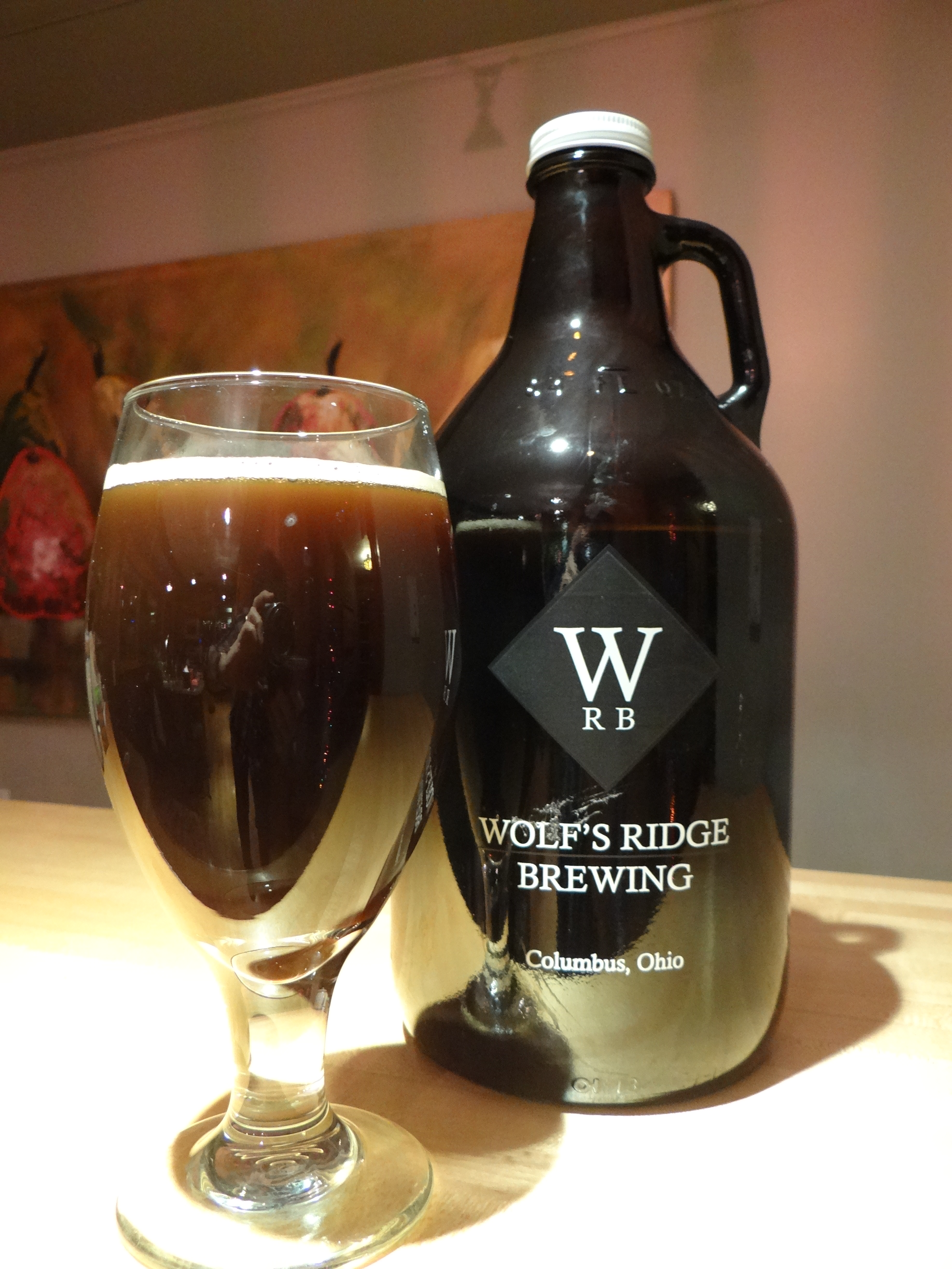 Wolf’s Ridge is one of the newer breweries in Columbus, opening up about 3 months ago (9/27/13). This past weekend I went there for dinner and some beers and picked up a growler of their English Brown Ale, Knotty Brown, to bring home for a closer look/taste. To the best of my knowledge there are no other online reviews of this beer. Here are the numbers:
