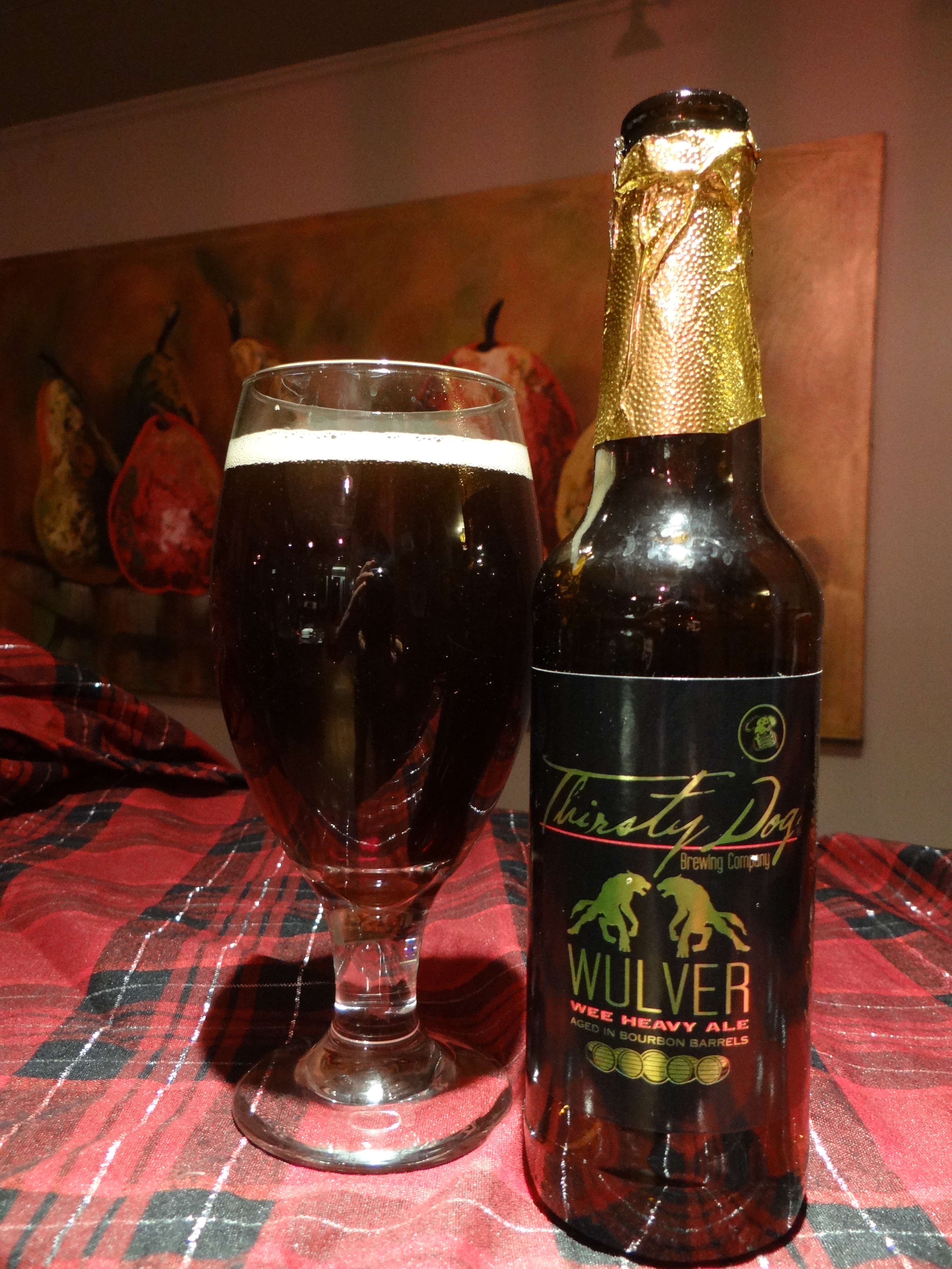 3. Wulver by Thirsty Dog (Barrel Aged Scotch Ale) – According to legend a Wulver is a kind of werewolf that inhabits the Shetland Islands of Scotland, so this beer keeps the dog theme that you expect from Thirsty Dog.  Wulver is a Scotch Ale aged for 11 months in bourbon barrels. The nose is an enticing mix of caramel, bourbon and vanilla.  The taste is smooth caramel accented nicely by vanilla notes from the oak barrels.  Bourbon is a supporting actor in the taste, but there is relatively little bourbon burn on the finish. The mouthfeel is rich and silky smooth.  It’s amazingly drinkable for 12% abv.  We compared Wulver and Backwood’s Bastard from Founders in the Ohio vs. Michigan Blind taste test and Wulver emerged the clear victor salvaging a tie for Ohio in that contest.  One of the best, if not the best, barrel aged beer I’ve had the pleasure to try.  If you are looking for the ultimate Scotch Ale your quest ends here.