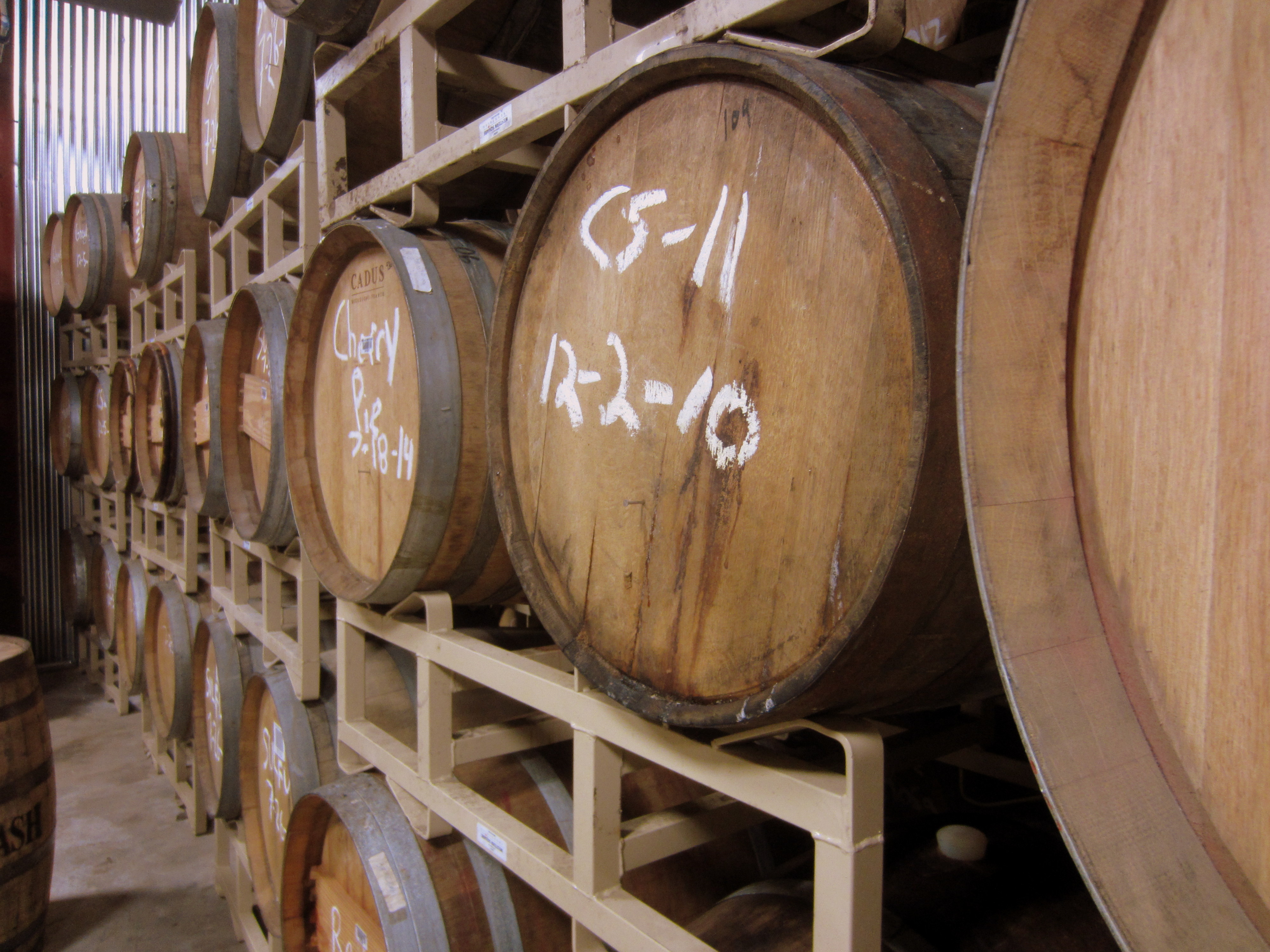 A few of the barrels used for aging beer.