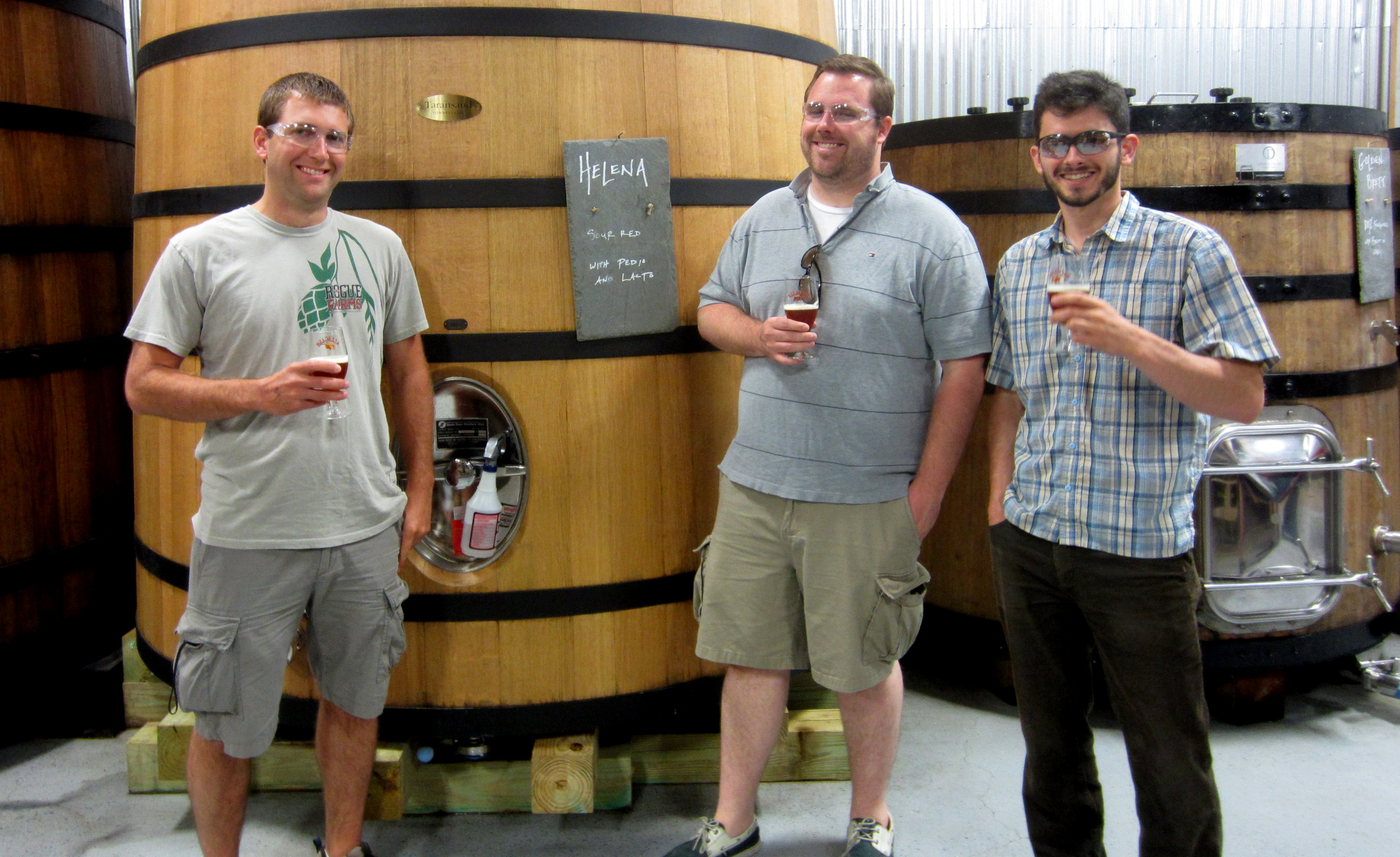 My partners for the day, Brian, Brent and Jamie, in front of a foudre containing a beer called Helena.