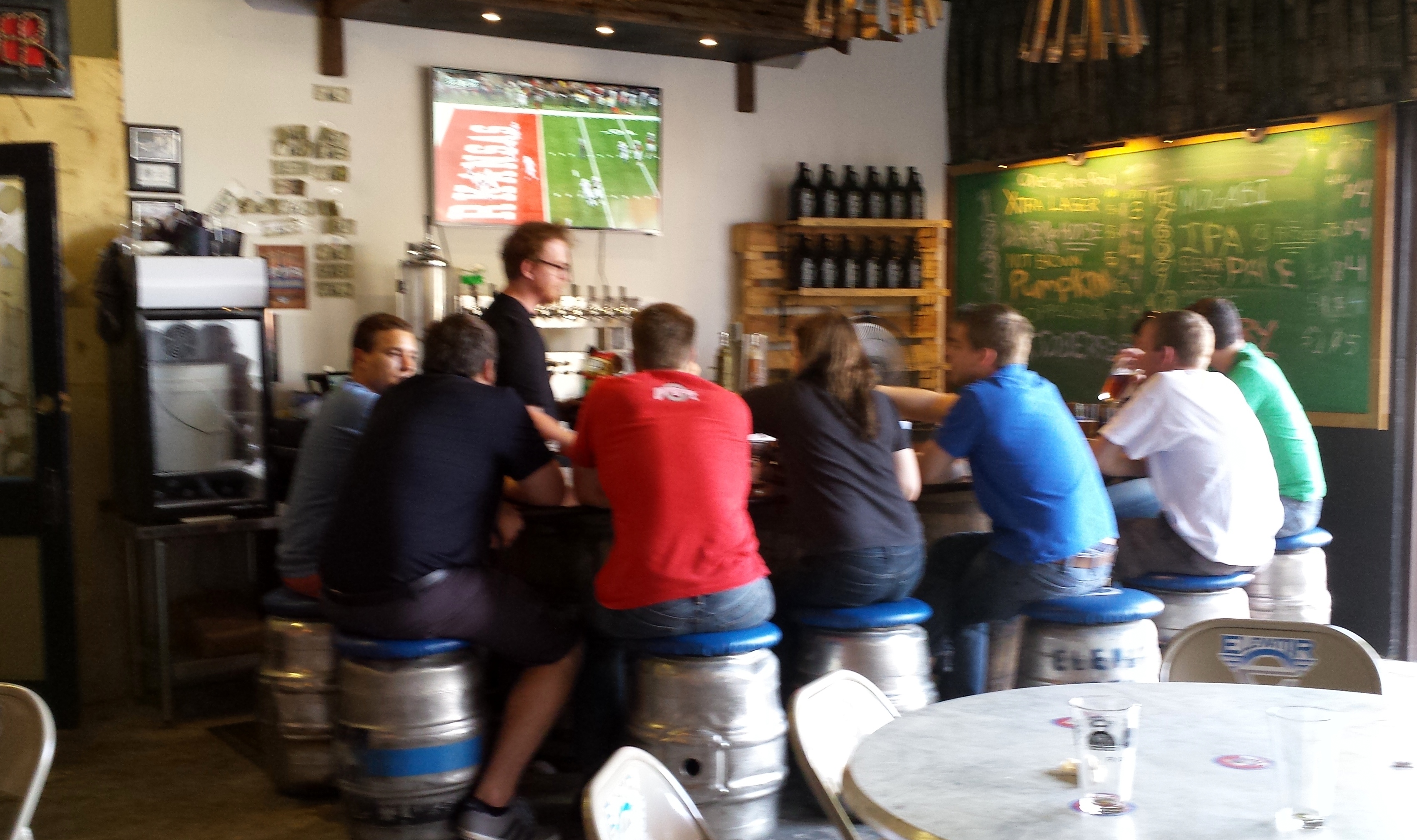To celebrate their 15th birthday they are doing what breweries do best and throwing a party. It will take place this coming Saturday, Nov. 8, from noon to 8 pm at the 13th Floor Taproom (165 N. Fourth Street). Just to make sure there is no confusion, the party is at the Brewery/Taproom on 4th Street NOT at the Restaurant/Draught House on High Street. Having spent the better part of last Saturday at the brewery judging the King of Ohio IPA event, and then just hanging out in the taproom, I can attest first hand that it’s a great spot to spend a Saturday afternoon. They have the full lineup of Elevator beers, a wall mounted big screen TV showing college football, padded kegs serve as the bar stools, and they have the only beer themed urinal in the city. The 15th Anniversary party will include live music, a visit from CD 102.5, food trucks, and stupid human tricks (the last one is not guaranteed/sponsored by the Elevator but is usually a safe bet when you put a room full of people and copious amounts of beer in the same room for 4+ hours).
