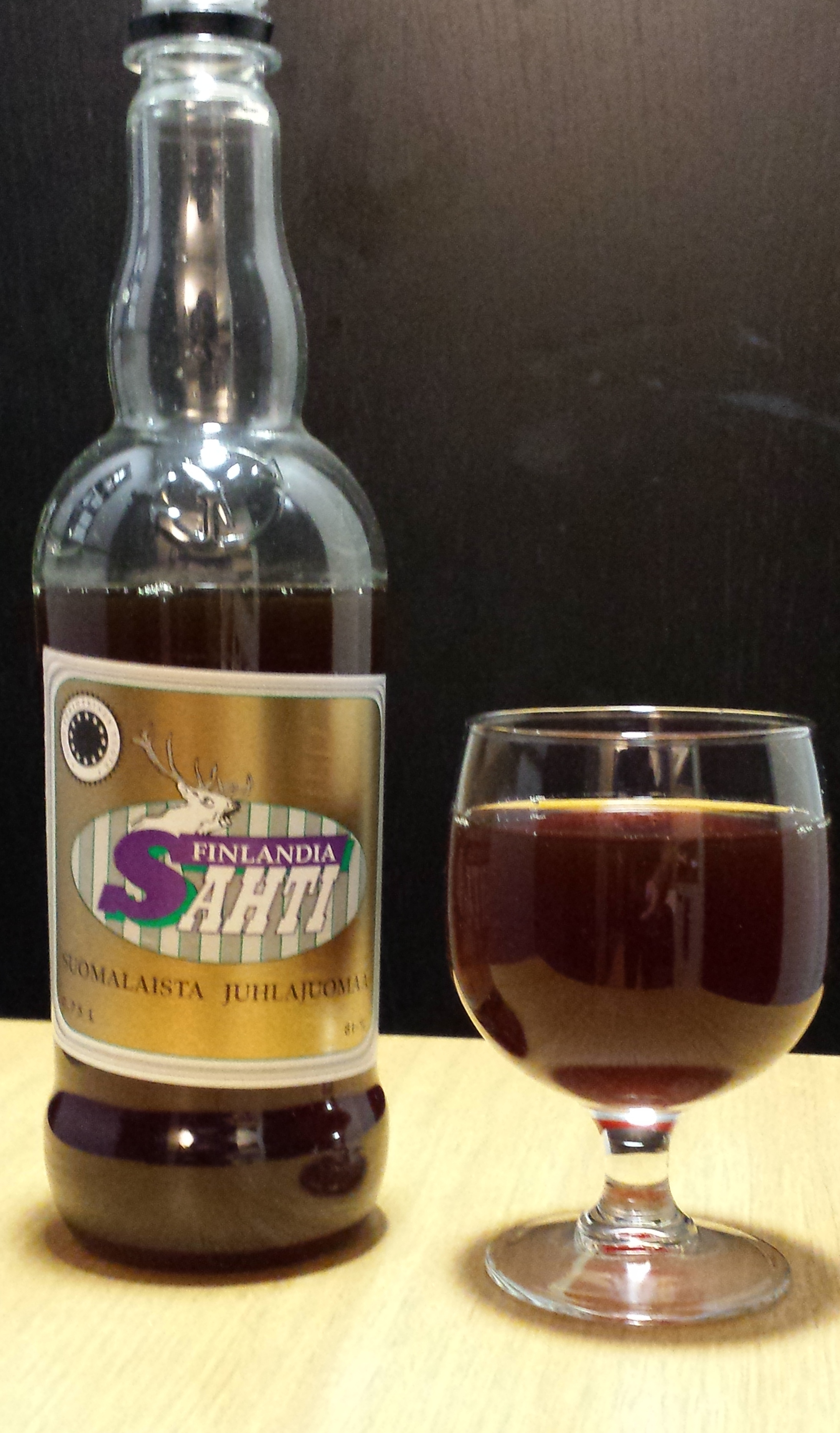 The bottle of Sahti that I was gifted is brewed by Finlandia brewery, which is a small brewery located in Forssa a town that is 115 km northwest of Helsinki.  It comes in a plastic bottle with a screw top lid and a crooked label.  Not exactly the cage and cork sophistication you get from many Belgian farmhouse ales.  The beer itself is a deep brown color with absolutely no carbonation.  I can’t recall pouring a beer that was this flat.  It’s quite aromatic though, with a distinct banana aroma that is reminiscent of a German Hefeweizen or Dunkelweizen, and some spicy, herbal aromas that are hard to describe. Some clove-like phenols are definitely present, but there are also herbal notes that I assume come from the juniper.  To the taste it’s sweet and syrupy with a big helping of bready, caramel maltiness and a healthy dose of the bananas that were so evident on the nose.  They do use baker’s yeast to brew Sahti, and the end result is a little like a glass of spiced banana bread.  The thick, syrupy mouthfeel is accentuated by the complete lack of carbonation.