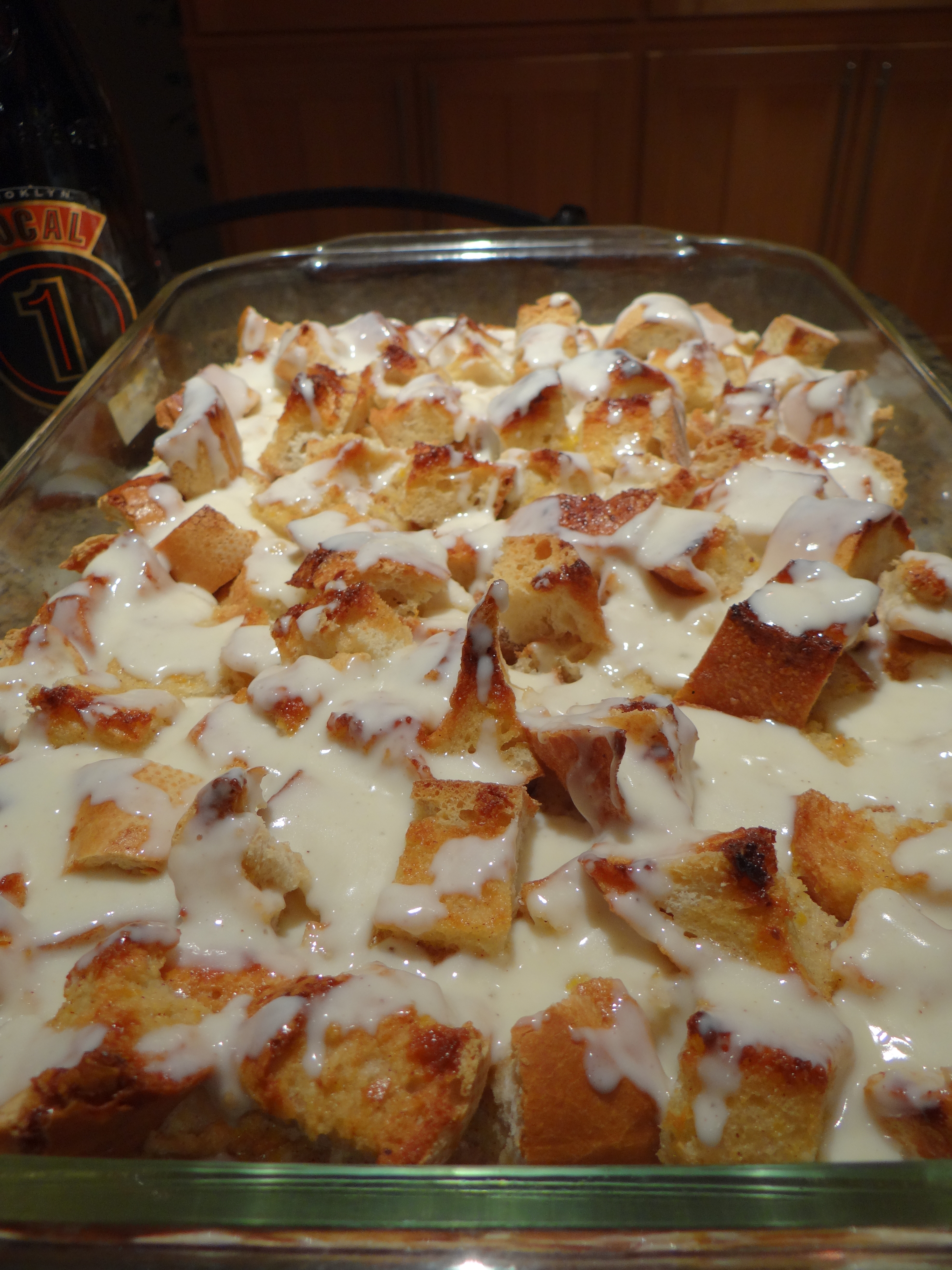 I served the dish warm, making up the cream sauce just after the bread pudding came out of the oven, but I’m sure it would be good made up ahead of time and served cold.