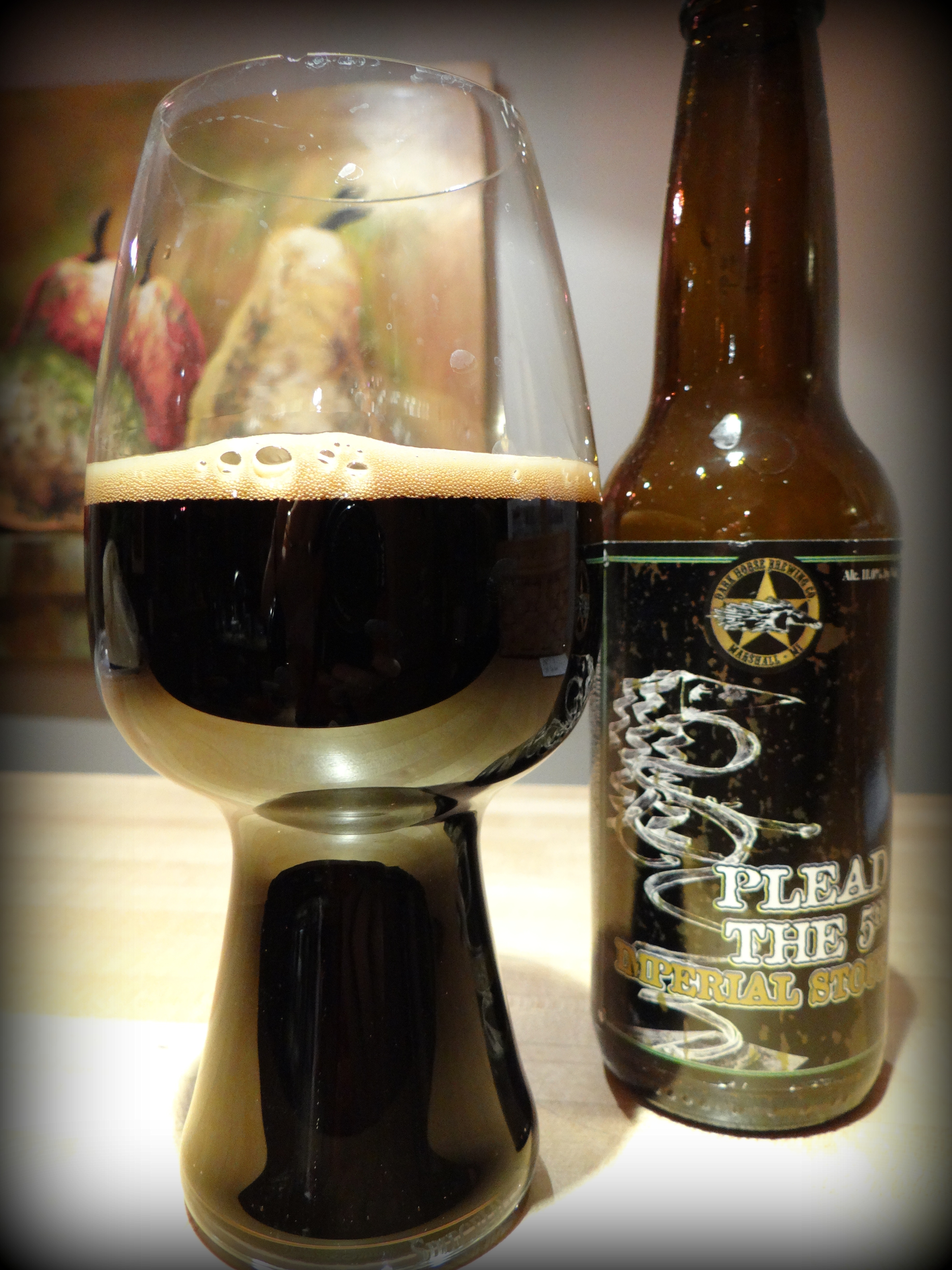 Looking out my window today I see that winter is still fully entrenched in Central Ohio, which means it’s time for the second installment of Sunday Stout Soliloquies. Today we take a closer look at Plead the 5th Imperial Stout by Dark Horse Brewing. Not content with making one or two different stouts, Dark Horse releases a series of no less than five seasonal stouts gradually increasing the intensity as the weather turns colder – One Oatmeal Stout (October release), Too Cream Stout (November), Tres Blueberry Stout (December), Fore Smoked Stout (January), and Plead The 5th Imperial Stout (February).