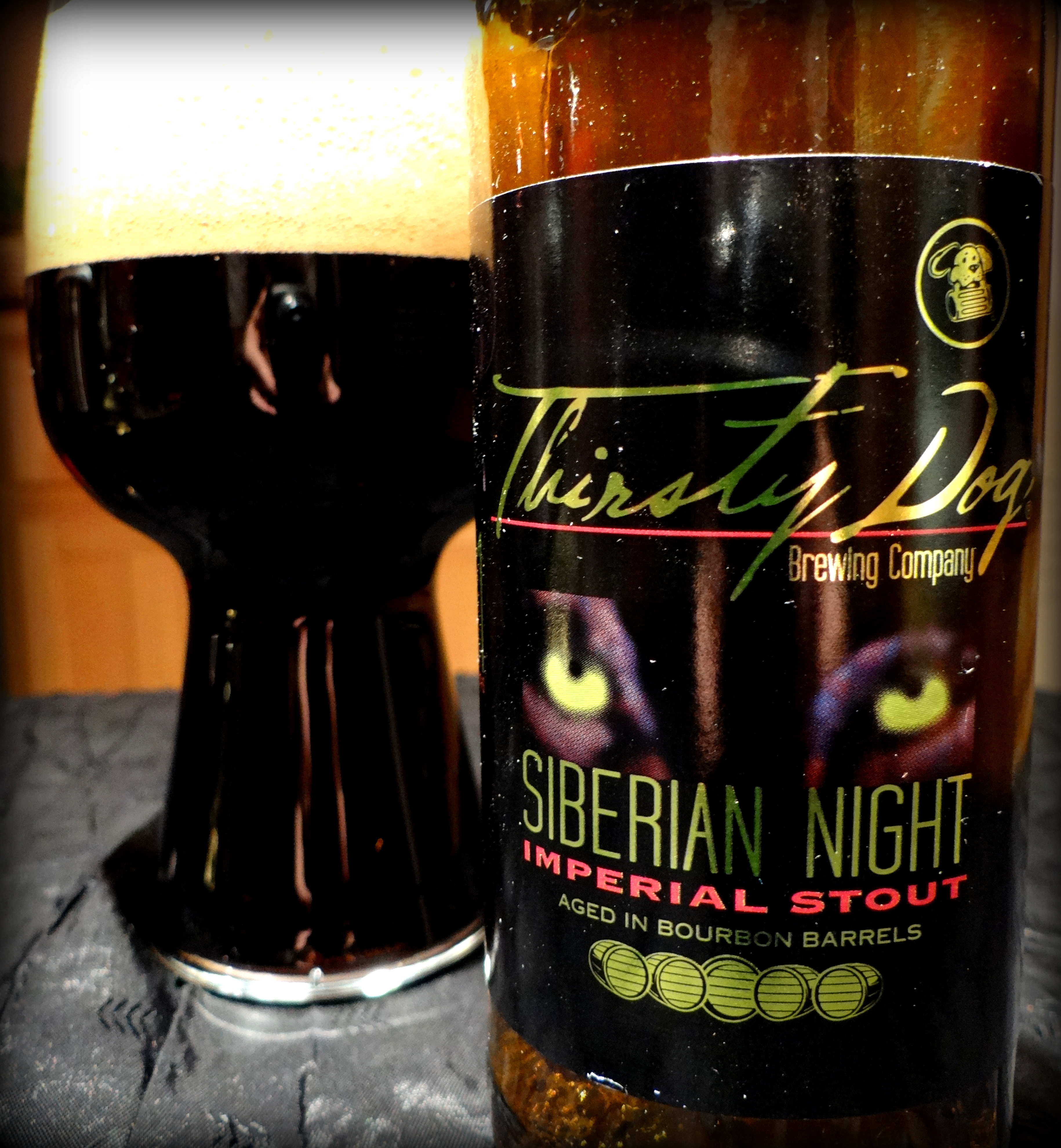As we approach St. Patrick’s Day many a pint of Irish dry stouts like Guinness and Murphy’s will be hoisted. I’ll admit that I have a soft spot for a good pint of Guinness served on nitro, particularly when looking for something sessionable. It may surprise you to learn that Guinness has the same alcohol content as a Coors Light (4.2% abv), but let’s be honest even the best pint of an Irish dry stout is like an appetizer compared to the banquet of flavors in an imperial stout. So I’ve decided to stick to imperial stouts for this week’s installment of Sunday Stout Soliloquies. Today we take a closer look at the barrel aged version of Thirsty Dog’s Siberian Night Imperial Stout.