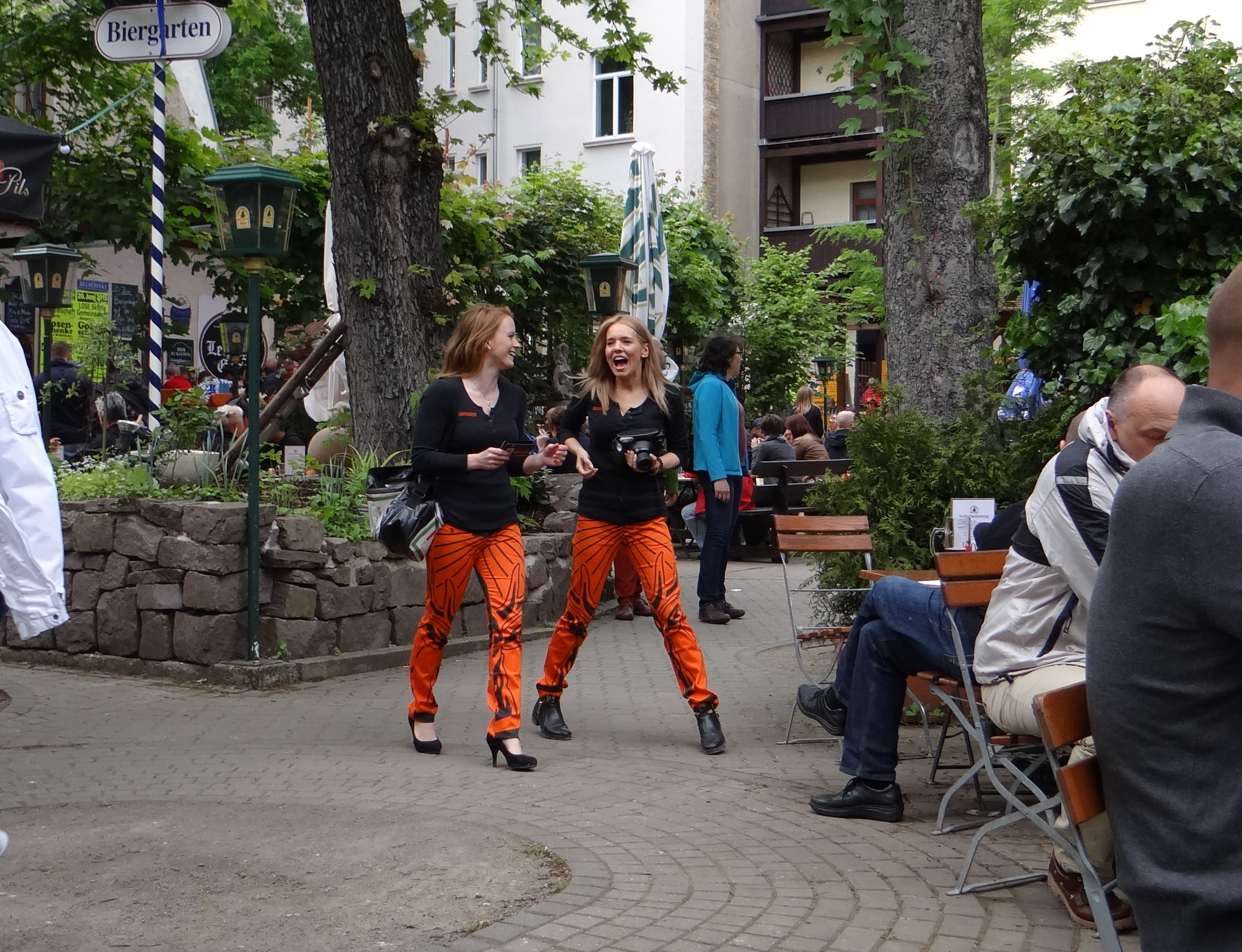 Before very long my glass is empty and I head back to the bar for another. One can order no less than a dozen variations of gose each with a different syrup or liquor added, but I can’t bring myself to mess with the unadulterated pure form of this classic beer. About this time a group of young blonde women wearing tiger striped pants arrive and immediately start interacting with the patrons. It doesn’t take long to realize that this is not an all-female drinking team, nor a phalanx of Valkyries gone rouge from a Wagner opera, they are a squadron of Jagermeister girls. Their job is to pass out free aluminum shot glasses and airplane sized bottles of Jagermeister, while posing for polaroid pictures with the patrons. All in all, the mood is incredibly jovial for a Thursday afternoon in mid-May. In retrospect, I should have spent my entire visit to Leipzig in this enchanting beer garden.