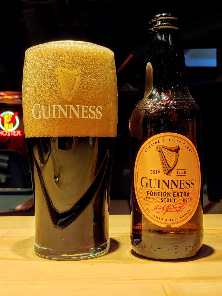 With St. Patrick’s Day upon us the popularity of Irish stouts reaches a zenith. An estimated 13,000,000 pints of Guinness are sold worldwide every St. Patty’s Day. Anyone reading a beer blog will be very familiar with Ireland’s most popular export, but what you may not know is that Guinness Draught, the beer that is synonymous with Irish stouts, is a mid-20th century invention. The magic trick of pressurizing and dispensing with a mixture of nitrogen and carbon dioxide was not introduced until 1959, the brewery’s 200th birthday. The use of nitrogen, which accounts for three-quarters or more of the mixture and is 50 times less soluble in water than carbon dioxide, is responsible for spectacle of the Guinness surge, the ultra-creamy mouthfeel, and the low-levels of dissolved carbon dioxide that allow the malts to shine. Nitrogenation is not the only way in which Guinness changed over the course of the twentieth century. In the old days Guinness Stout was a blend of “old” beer, aged for many months in large wooden vats at St. James Gate, and younger more highly carbonated beer. This approach dates back to the practices used to make London porter, which was the staple of the brewery for many years. If you want to taste a beer that has a connection to the way Guinness was once made, you’ll need to climb the ladder to the strongest stout in the Guinness family, the Foreign Extra Stout. In celebration of St. Patrick’s Day that’s exactly what we are going to do today.