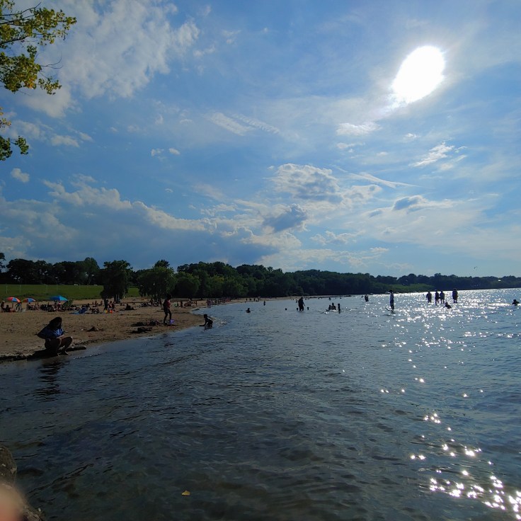 Upon leaving Terrestrial our adventure takes an unexpected detour. Ted grew up in Michigan and has a fondness for the Great Lakes. The prospect of coming this close to Lake Erie without dipping his toes in the water doesn’t sit well with him. While not far from Lake Erie there is a rather busy four lane highway between us and the water. After a bit of scouting Ted finds a tunnel that goes under the road and leads us to a wide sandy beach on the lake. Kids are building sandcastles, people of all ages are frolicking in the water. We’ve slipped from afternoon into early evening and the temperature is hovering around 80 °F. I’m sure in early January when the cold arctic winds bring lake effect snows this can be a harsh place, but today it’s as close as you get to paradise in Northern Ohio. Before you know it shoes and socks have been stripped off and we are wading in the shallow waters of Lake Erie. If you are visiting Cleveland with companions who might grow tired of visiting one brewery after another a trip to Edgewater Beach could be a valuable ace in the hole.