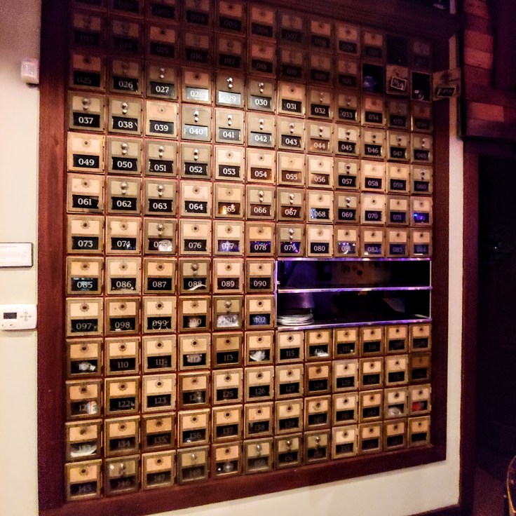 The taproom that co-founders Gavin Meyers and Tim Ward built out of a former car dealership is a truly unique space. Dark wood features prominently in the décor, much of it salvaged from historic campus and community buildings, In fact, wood paneling was once the central design element on cans of North High beer. There is a wall of post office boxes from post-Katrina New Orleans that hold the mugs of regulars, and a 100+ year old train rail serves as the footrest for patrons who belly up to the bar. If you have time on your hands this evening it’s worth one last look. I do hope that the next occupant of the building will retain some elements of the space.