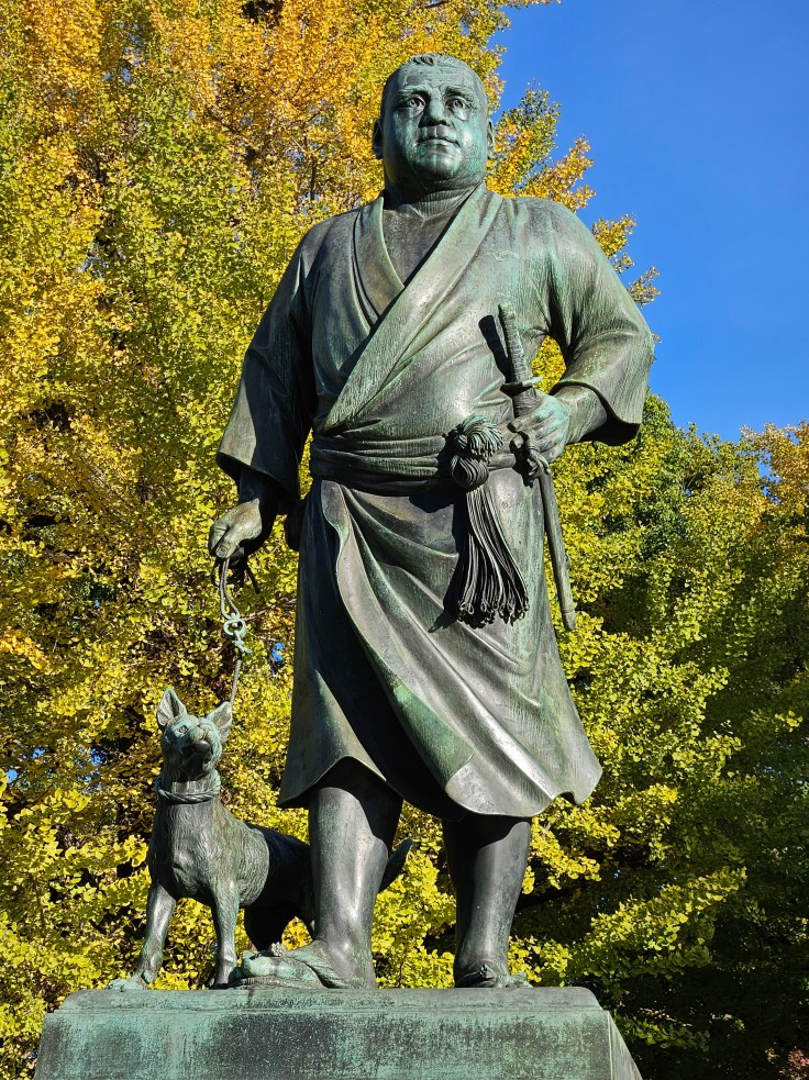 Once you leave the shrine, walk past the zoo entrance and make your way down to the southern tip of the park where you can find a monument to the samurai who fell in battle here. Not far from that memorial is a statue of Saigō Takamori, a samurai who fought on the imperial side of the conflict and negotiated a bloodless surrender of Edo Castle. He was initially a counselor to the Meiji government but opposed the abolishment of the samurai class and eventually led a rebellion of his own against the government. He died at the battle of Shiroyama and is widely known as the last samurai. (Parts of this story are depicted in the 2003 movie The Last Samurai starring Tom Cruise and Ken Watanabe in the role of Saigō Takamori. It’s a decent watch if you want to get up to speed on this period of Japanese history.) Unless you read Japanese you won’t be able to figure any of this out from the statue of a smiling samurai walking his dog, but since you follow this blog you’ll know.