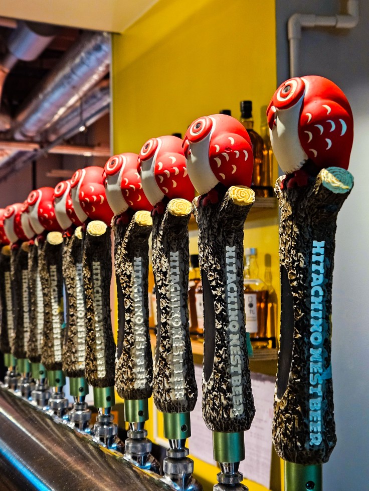 After perusing the vinyl at RECOfan (our search for something from the Kyoto based, all-female punk-rock-garage quartet Otoboke Beaver was unsuccessful) we stumbled upon one of many Tokyo taprooms operated by the Kiuchi Brewery. This venerable sake brewery (they’ve been brewing sake since 1823) launched the Hitachino Nest line of craft beers in 1996. If you are my age, you might be thinking that there were plenty of craft breweries around in 1996, but you wouldn’t think that if you grew up in Japan. Prior to 1994, a brewery needed to produce at least 2,000,000 L (17,000 bbl) of beer to be licensed. This effectively shut the door to all competitors aside from the large macro breweries (Asahi, Sapporo, Kirin, Suntory, …). The Kiuchi Brewery was one of a handful of groundbreaking craft breweries that came into existence in the late 1990s. As far as I know it is the only Japanese craft brewery that sells its beers across the US (or at least in Columbus, OH).