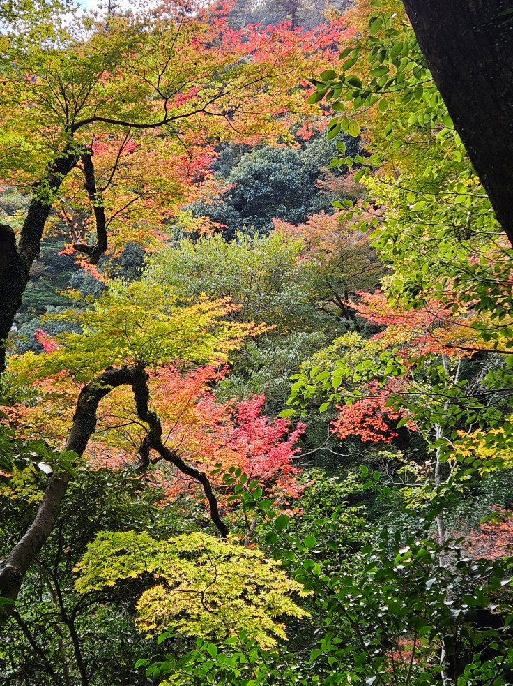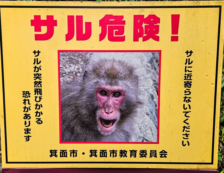 Given the lovely weather we start the day with something atypical for a visit to Osaka, a hike through a forested mountain trail to a waterfall. To do so we take the Midosuji subway line from Yodoyabashi Station to its northernmost stop at Minoh-kayano Station, a 30 minute journey. We store our luggage in a locker inside the adjacent shopping mall and jump on a bus that drops us off near the wooded foothills that mark the northern boundary of metropolitan Osaka. There’s more than one way to get here, so consult Google Maps and make the call that works best for your situation.