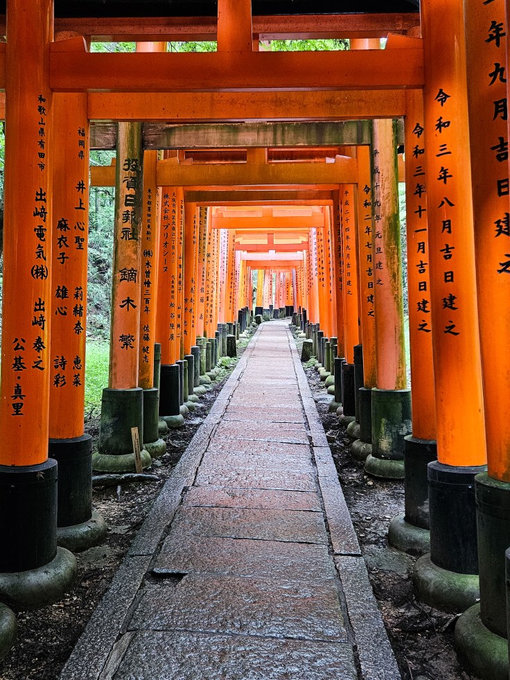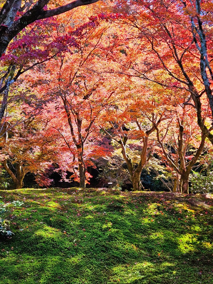 Tofuku-ji is probably best known (or at least most visited) for the brilliant scarlet maple trees that put on a stunning display in the autumn, but it’s far from a one trick pony. The massive Sanmon gate with an elaborate dragon painted on the ceiling is impressive. The abbot’s quarters are surrounded on all four sides by different takes on the Zen rock garden. The rock gardens include a traditional dry garden, a checkered moss garden, and a garden that represents the big dipper. Actually, I found the rock gardens here to more impressive than the better known garden at Ryoan-ji. There’s a small stream that cuts a canyon through the complex. When I visited in late November a slow-moving throng of people (myself included) followed a path that snaked around through the maples and over the Tsūten-kyō Covered Bridge. All the while gawking at and snapping photos of the autumn foliage. Despite the crowds, the fall colors make an impression that I will not soon forget.